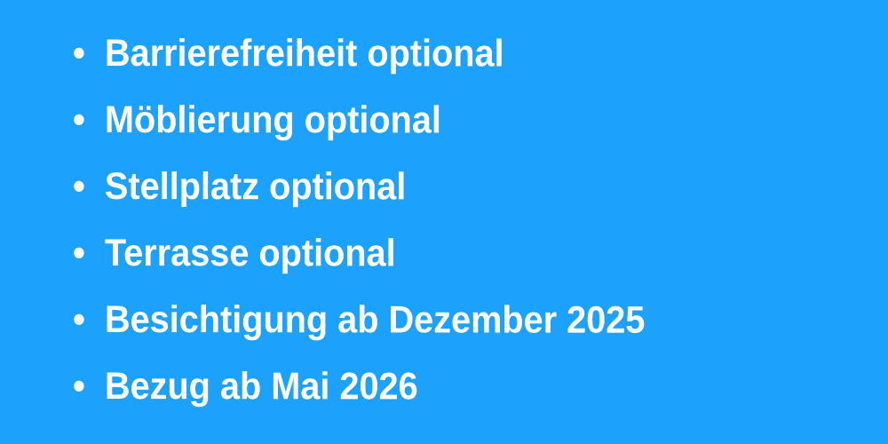 Barrierefreiheit, Geräuschdämmung, Wärmedämmung, Smart Home
